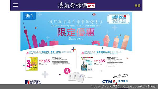 (853)6212-8029地址:【指定領取專櫃】澳門國際機場 入境大堂「濠江旅行社」櫃台 (位於澳門旅游局服務點對面)